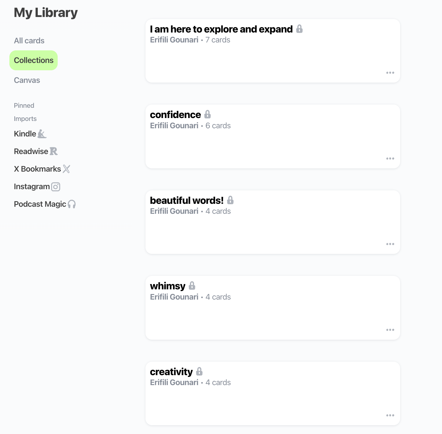 Every time I sit down to write an essay, I check my Sublime collections, where I’ve saved various bits of inspiration over time. I’ve categorized my collections into broad topics, such as “self-belief”, “big dreams”, “creativity”, and that makes it so easy to find interesting ideas to pull from any time I need inspiration for writing a new piece. I also have a Sublime collection called “writing”, where I save quotes from books I read about writing itself. I’m currently reading Natalie Goldberg’s Writing Down the Bones, and there are so many snippets I’m saving as I go. Sometimes just reading about writing gives me so much inspiration to try new things, consider different lenses, and be more experimental and intentional in how I write. You just never know where your next big idea will come from!
